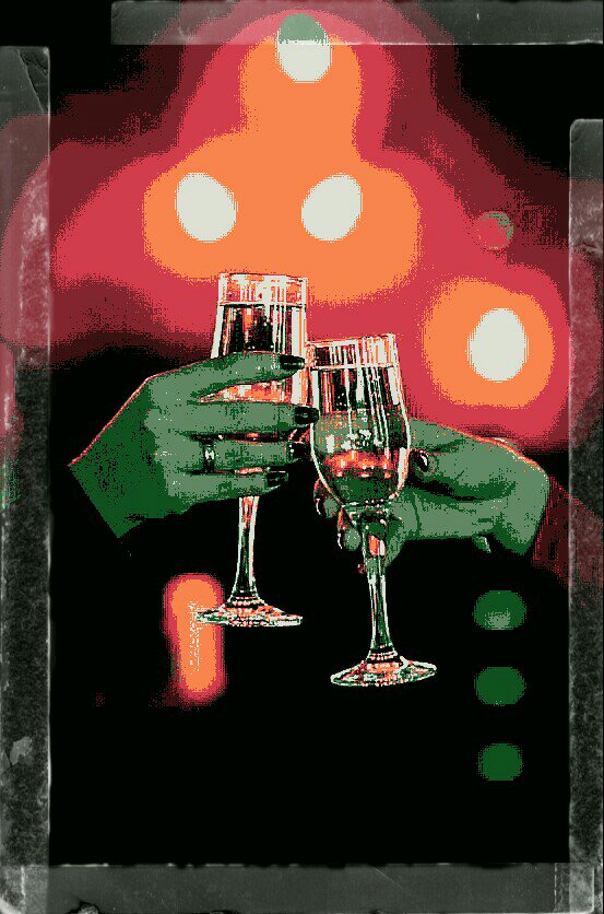 Pasada la cena se dirigieron como dos niñas, tomadas de sus cinturas, al living. Las esperaba el mullido sillón, una luz tenue de una restaurada lámpara, la música de Noche de ronda se escuchaba muy suavemente. En la mesita ratona las burbujas del champagne danzaban en ambas copas, donde coronarían el brindis.